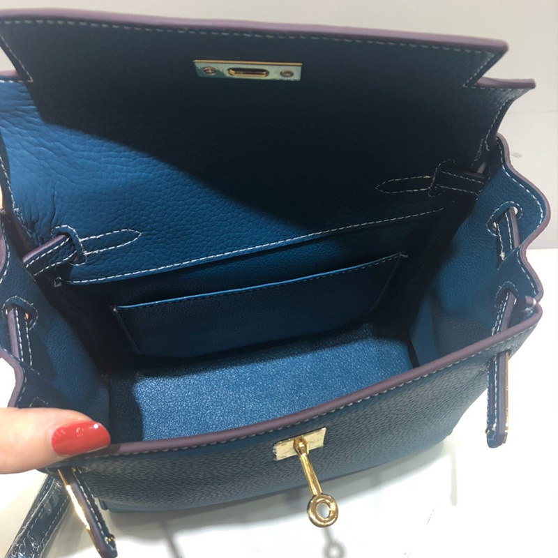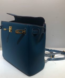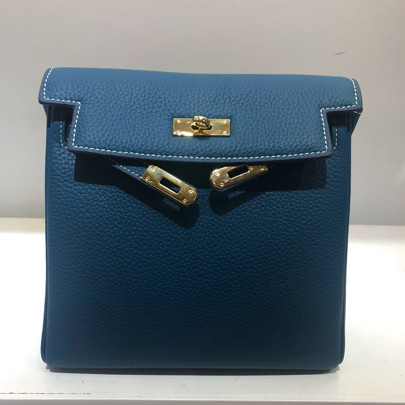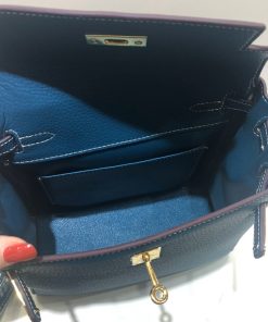 Hermes Kelly Ado Backpack Clemence Leather Gold Hardware In Navy Blue